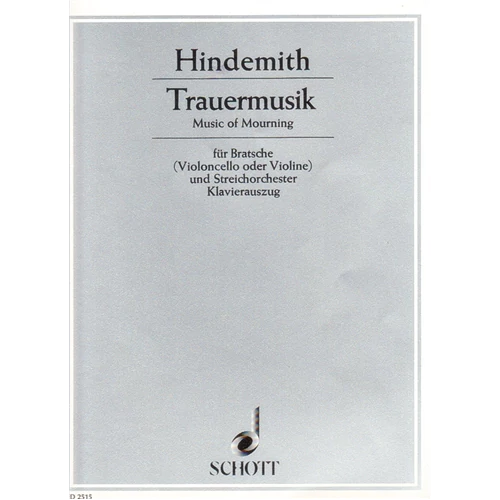 HINDEMITH, PAUL: Trauermusik für Brasche (Violoncello oder Violine) und Streichorchester. Klavierauszug |