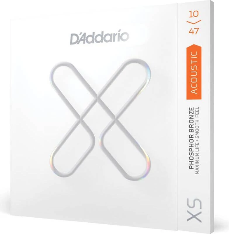 A D’Addario az XS szériás húrok esetében egy olyan új technológiát alkalmaz, melyet eddig még nem használtak bevonatos húrok készítésénél. Ezzel az új módszerrel, illetve anyaghasználattal minden eddiginél vékonyabb védőréteget képesek előállítani, mely elvileg jobban is véd, mint a bevonatos húroknál alkalmazott korábbi technológia és anyagú. Óriási dolog, hogy ez az új védőréteg szinte nem befolyásolja a hangot úgy, mint a korábbi bevonatos húrok. Sem játékérzetre, sem a hang tekintetében. Ezzel a D’Adddario XS szériája talán új kapukat nyit a bevonatos-húr-szkeptikusok előtt is. A húr hatszögletű (hexagon) acélmag keresztmetszetre tekert foszforbronz anyagból áll, majd erre kerül az emberi hajszálhoz képest tized akkora vastagságú vékony védőbevonat. A foszforbronzot még a hetvenes években a D’Addario alkalmazta először, azóta pedig az húrgyártók ipari standard anyagának bizonyult az akusztikus gitárhúrok gyártásában. A húrok tövében alkalmazott „fusion twist” elnevezésű tekercselési eljárás gondoskodik a tartósabb hangolási stabilitásról, illetve a szakadással szembeni nagyobb ellenállásról. A játékérzet abszolút természetes. Nem csúszik, nem ragad, pont a megfelelően kicsi felületi tapadással rendelkezik a kényelmes, (adott esetben a) gyors játékhoz. Az ujjak által keltett, csúszáskor keletkező húrzaj is mintha kevesebb lenne egy átlagos húrhoz képest. Hangját tekintve is abszolút természetes, nincsen semmi „műanyag” a soundban. Szép, felharmonikusokban gazdag, erőteljes, vastag, telt hangja van. 10, 14, 23. 30, 39, 47 |