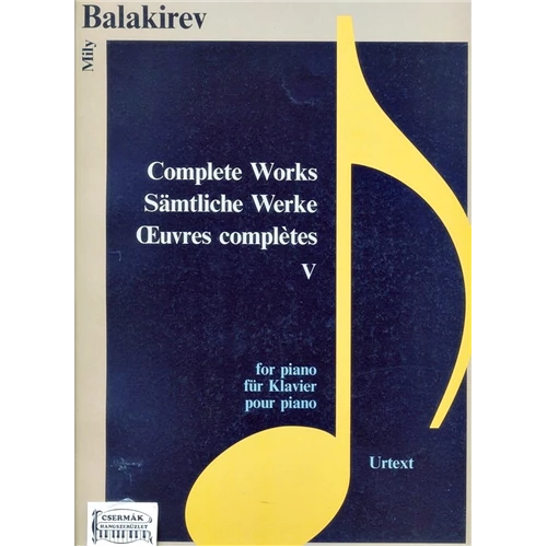 Balakirev: Complete Works V. for Piano 1. Sonata, 2. Novellette, 3. Valse No.7., 4. La Fileuse, 5. 7-éme Mazurka, 6. Impromptu sur des thémes de deux préludes de Fr.Chopin, 7. Sonatina. |