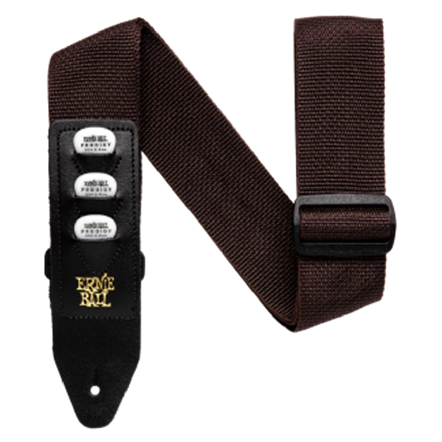 Gitárpánt Ernie Ball pengetőtartóval, barna színben