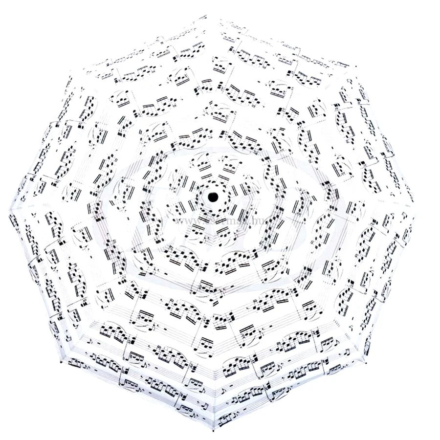 Összecsukható esernyő fehér színű, kotta mintával. átmérője 100 cm. Zenei ajándéktárgy. |