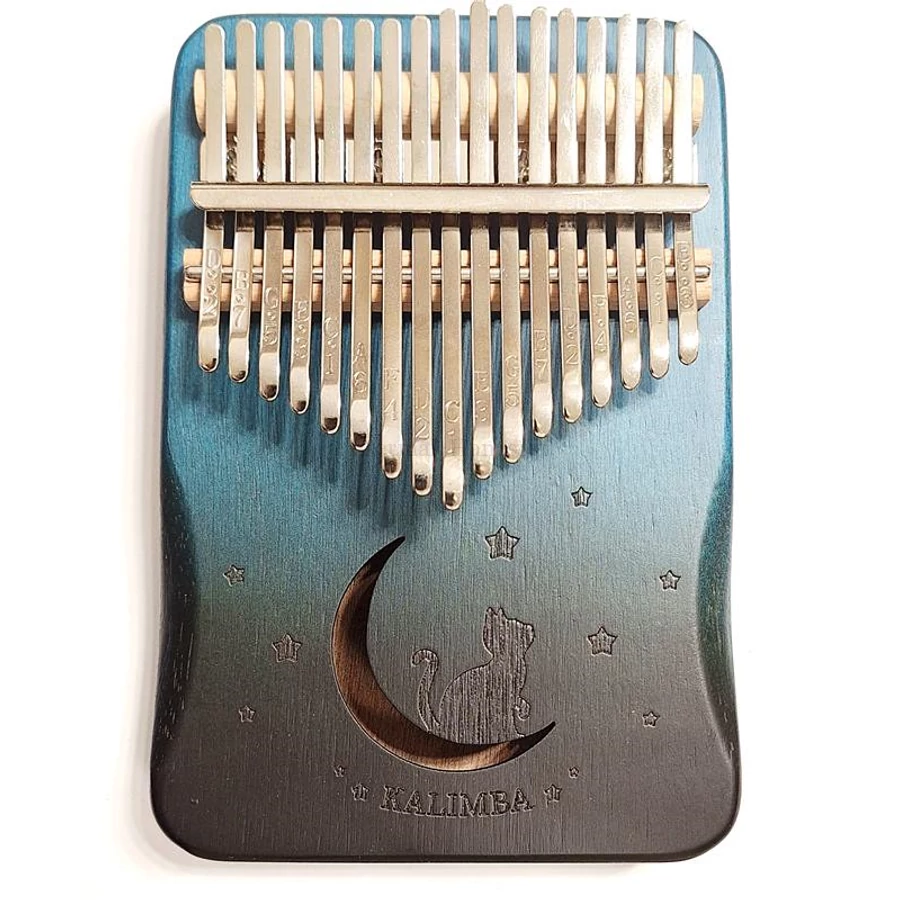Kalimba készlet, csillag,hold és cica mintával, kék, sötétzöld színátmenettel, 17 hangú