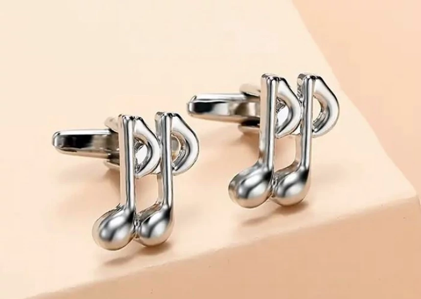 Mandzsettagomb, ezüst színű, hangjegy forma
