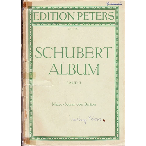 | SCHUBERT ALBUM II. MEZZO-SOPRAN ODER BARITON (A) jelölése címben = Antikvár példány Teljes lapszámmal, jó állapotban lévő HASZNÁLT TERMÉK. | |