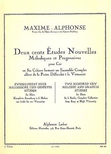 MAXIME-ALPHONSE: Deux cents Études Nouvelles. Mélodiques et Progressives pour Cor en Six Cahiers formant un Ensemble Complet allant de la Petite Difficulté á la Virtuosité. |
